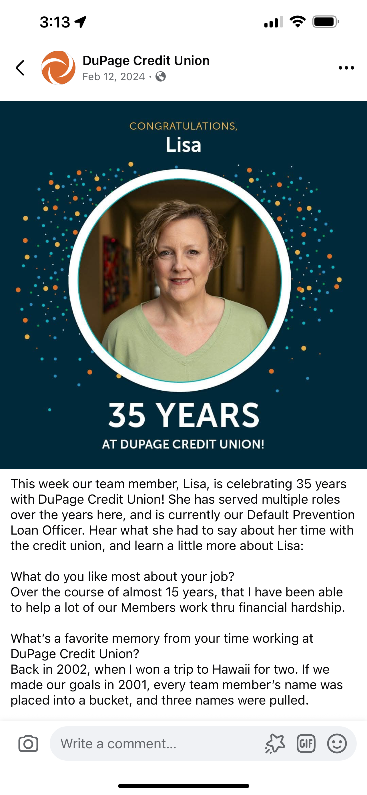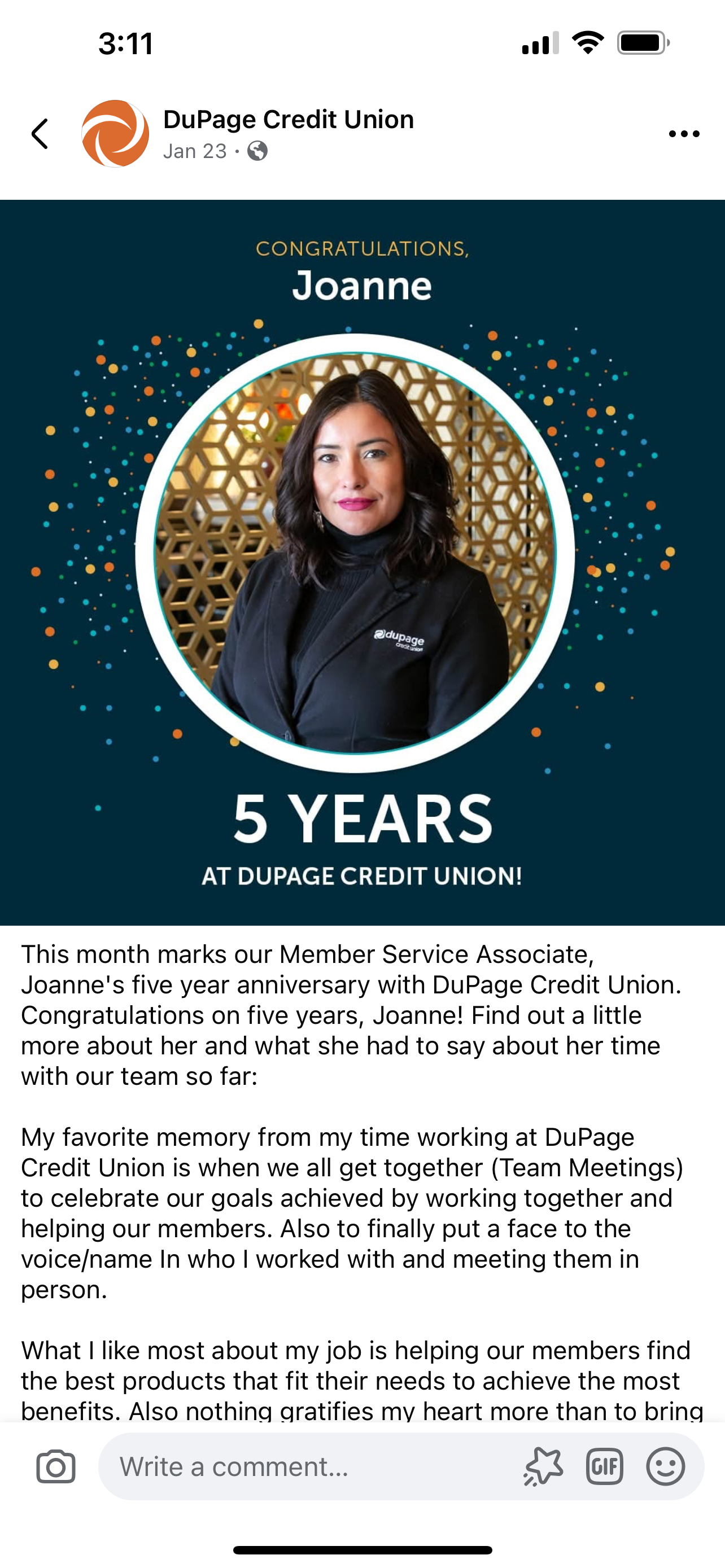 Social media ads for posting on the Credit Union Facebook and LinkedIn pages included employee anniversaries, special offers and general awareness campaign ads. As primary photographer, I made sure each employee anniversary post portrayed our people with professional, high-quality imagery, each portrait looking as unique as the individual portrayed in the social post.